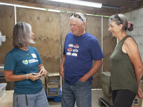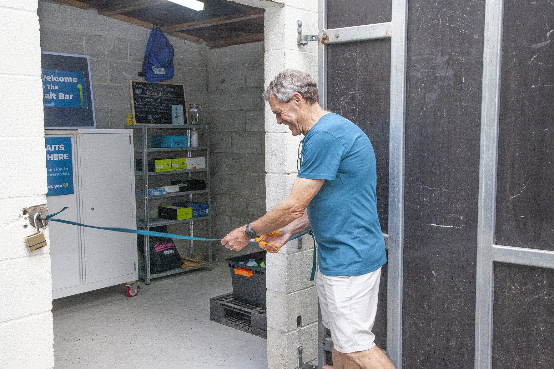 David Griffith, shed manager officially did the honours but cutting the ribbon on (what could possible be) New Zealand’s first Bait Bar. Volunteers were shown how to access the locked bait bar to restock their lure supplies. It was also the perfect opportunity for volunteers to connect with others, and get skilled up on using our web based app Adepty.